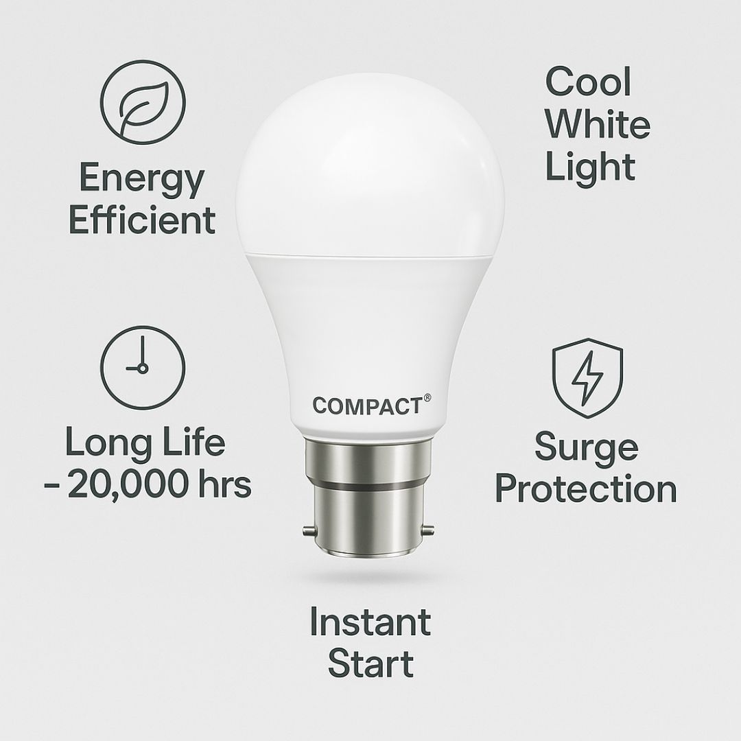 The Compact Classic LED Bulb is designed to deliver consistent, powerful illumination that elevates your daily experience. With IP20 protection, this bulb is ideal for indoor spaces—ensuring safety from solid particles and accidental touch. Whether it’s your bedroom, study, or hallway, the bright, cool white glow of this LED bulb creates a crisp, energizing atmosphere. Available in multiple wattage options, you can choose the perfect brightness to suit any room and mood.
